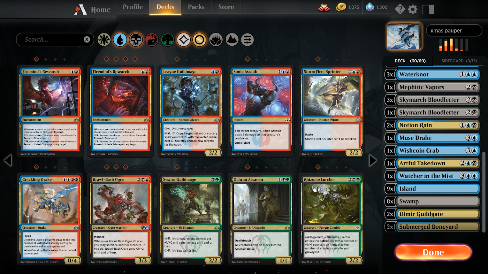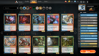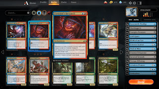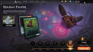First off, the game is pretty generous with what it gives you. There are about 8 packs a week you can earn from various quests (like play so many cards of a certain color) and there is a $5 welcome bundle to get you started. I noticed there was a pauper event going on, which is building a deck out of all commons, so that is where I spent most of my time.