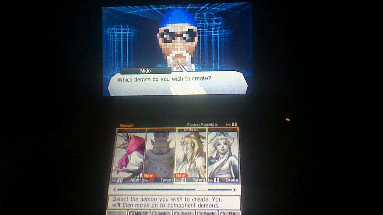 At anytime in the pause menu, you can fuse your demons to make bigger better versions. You can even unlock a skill to fuse them during combat. Each monster has a type. You need 2 or more of certain types to fuse each new Demon. You can also only fuse demons at or below the level of the main character. There really is no reason not to fuse early and often. I found I would often fuse when I ran out of mp because it is automatically full on the new fused Demon.