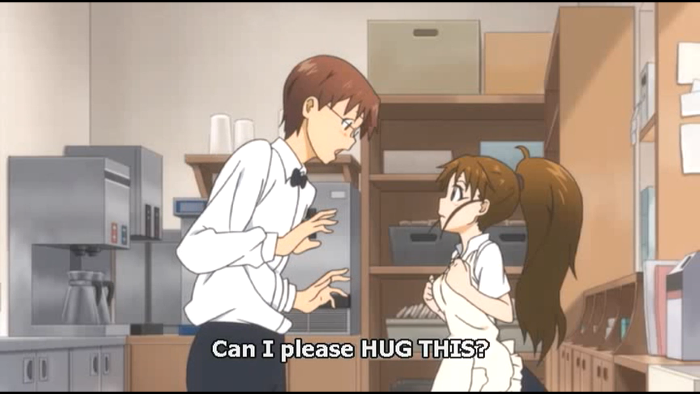 Takanashi at first believes she is a child and that she is lost. Once he learns she is 17, he can't believe someone so tiny and cute could be 17 (he has a strange weakness for tiny and/or cute things). He decides to take the part time job because the tiny elementary schooler (he is in denial about her age) would be there. He then meets the cast of characters at Wagnaria. The cast eventually expands to about fifteen who are all strange, in their own unique ways. Takanashi feels like the only normal person there, while his co-workers think he is kind of creepy. Funny and harmless, but still creepy.