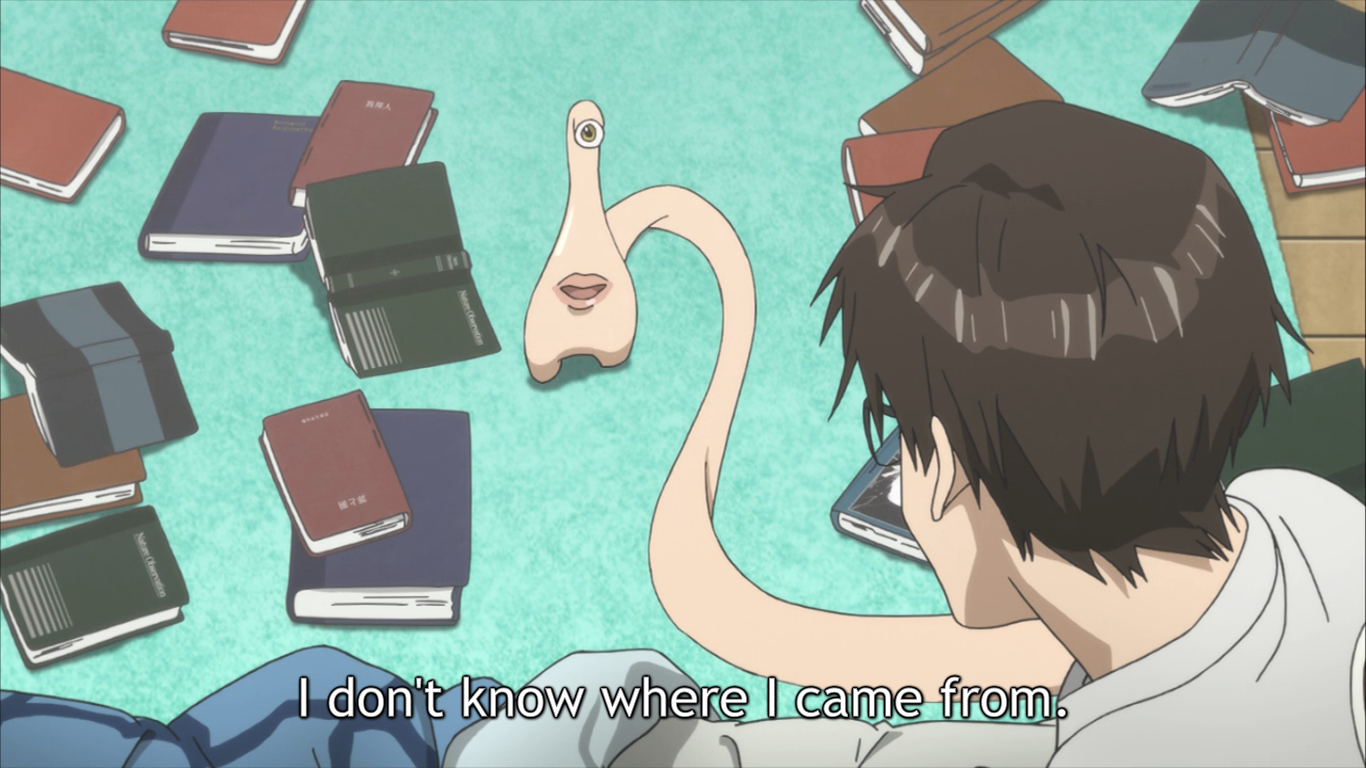 After four episodes, I am seeing quite a few similarities between Tokyo Ghoul, an anime from last season. The show is summed up fairly simply. Parasites of unknown origin infect random humans and take control of their brain, with the main character being the exception. He is infected, but only in the right hand and arm. The parasite can think for itself and often disagrees with the main character on their next move. In general, the show can be gross. Really gross. I wouldn't suggest watching it while you eat, that's for sure. There are even some decent moments of comedy, but they are far and few between.